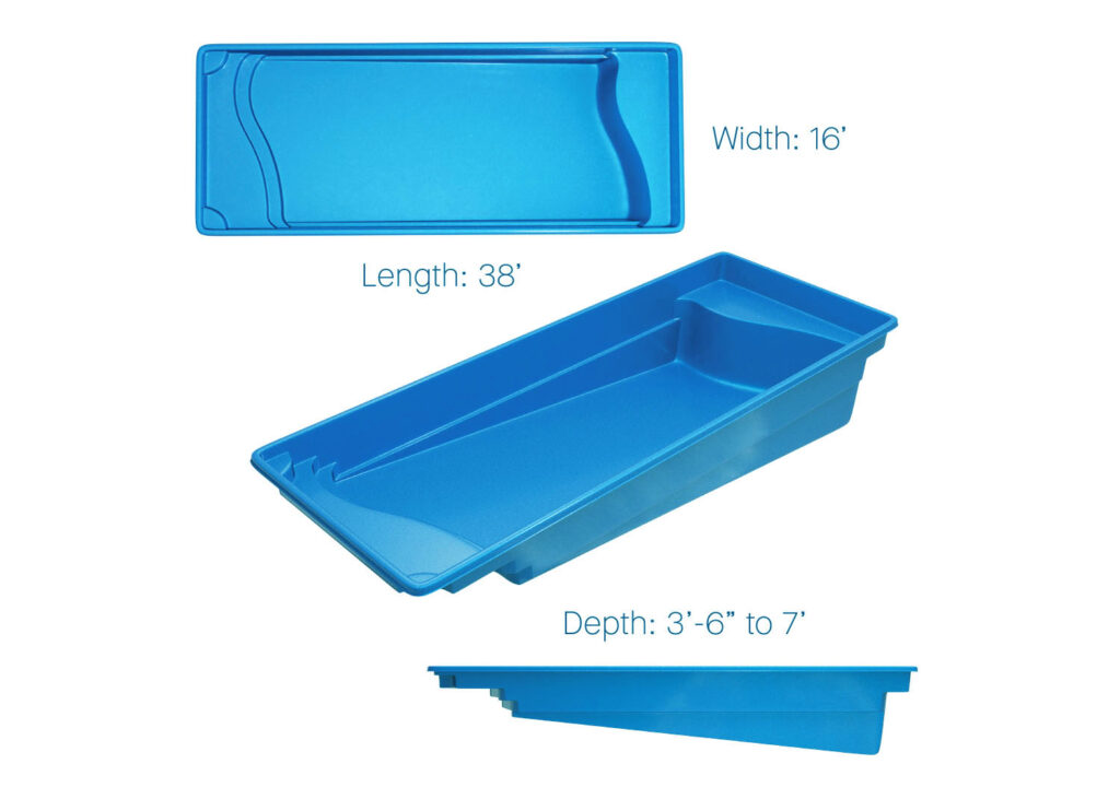 When you are looking for a full body submersion or a great place for youngsters to splash and play, a fiberglass pool design with a nice wading area might be a feature you want to consider. Wading areas are similar to tanning ledges but offer more water depth. Water depth of a wading area can vary and is approximately 14”-18” of water.