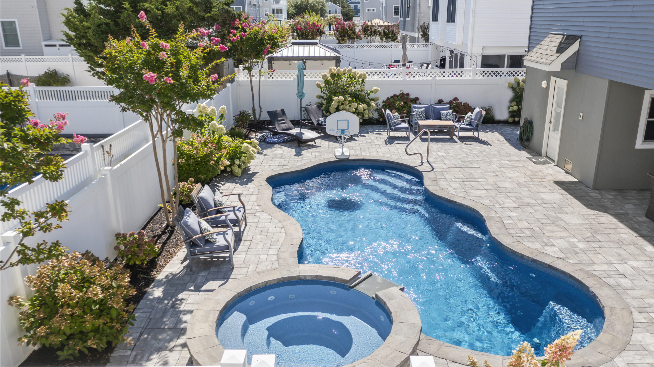 Discover how we’ve transformed backyards across Ocean County with stunning pools, spas, and custom features. Explore our portfolio to find inspiration for your own outdoor oasis.